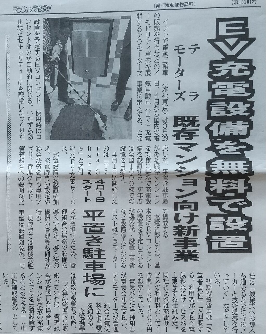 マンション管理組合・参考情報「EV充電設備無料で設置」